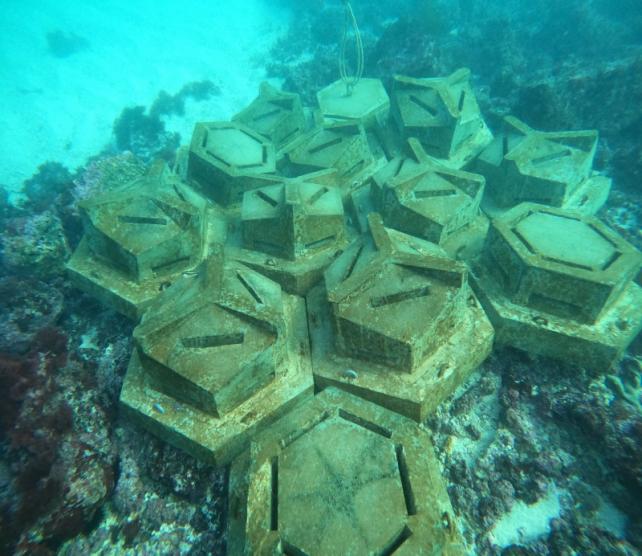 °³¹ßÇÑ ÇØÁ¶»ýÀ° ºí·ÏÀÇ È¿°ú¼º ½ÇÁõ½ÃÇèÀ» À§ÇØ Áö³ÇØ 11¿ù ±¸ÁÂÀ¾ Æò´ë¸® ¸¶À»¾îÀå(¼ö½É 5~6m)¿¡ ºí·Ï 33°³¸¦ Åõ¼®ÇÏ¿© ¾à 4°³¿ù°£ ¼öÁß ¸ð´ÏÅ͸µÀ» ½Ç½ÃÇÑ °á°ú ½Ã¼³¹°ÀÇ ¾ÈÁ¤¼º, ¼ÒÇü Àú¼»ý¹°ÀÇ ¼½Äó Á¦°ø, ÇØÁ¶·ù ºÎÂø±âÁúÀÇ ¿ªÇÒ µîÀ» È®ÀÎÇß´Ù.