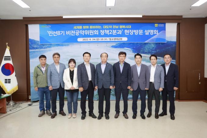 ¸íµ¿ÁÖ Á¤Ã¥2ºÐ°ú À§¿øÀåÀº ¡°ÇöÀåÀÇ ¸ñ¼Ò¸®¸¦ ¹Ý¿µÇϱâ À§ÇØ ¹ú±³±îÁö ¿Â À§¿øµé°ú Àü³²µµ ½Ç±¹Àåµé²² °¨»çµå¸°´Ù¡±¸ç ¡°¹ß±¼µÈ ¹Î¼±8±â ³ó¼ö»ê ºÐ¾ß °ø¾à»çÇ×°ú Á¤Ã¥°úÁ¦¸¦ ³»½ÇÀÖ°Ô ÃßÁøÇØ ¡®´ëµµ¾à! Àü³² Çູ½Ã´ë¡¯¸¦ ¸¸µå´Âµ¥ ¾ÕÀå¼ÁÖ±æ ¹Ù¶õ´Ù¡±°í ´çºÎÇß´Ù.