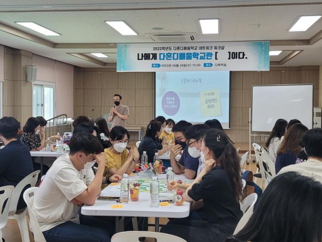 Á¦Áֽõ¿Áö¿ª ´ÙÈ¥µð¹è¿òÇб³(7°³±³) ±³»ç ³×Æ®¿öÅ©´Â Çб³ ±Ô¸ðº°·Î 2, 3°³ÀÇ ±×·ìÀ¸·Î Æí¼ºÇÏ¿© ¿î¿µÇÑ´Ù. ÀϵµÃÊ´Â Á¦ÁÖ¼ÃÊ ±³»ç¿Í ÇÔ²² Çб³ ±³À°°úÁ¤ ¿î¿µ, ¼ö¾÷ ³ª´®, Àü¹®ÀûÇнÀ°øµ¿Ã¼ ¿î¿µ ¹æ¹ý µîÀ» ÇÔ²² ³ª´©¸ç ¹è¿ì´Â ½Ã°£À» ¸¶·ÃÇÏ¿´´Ù.