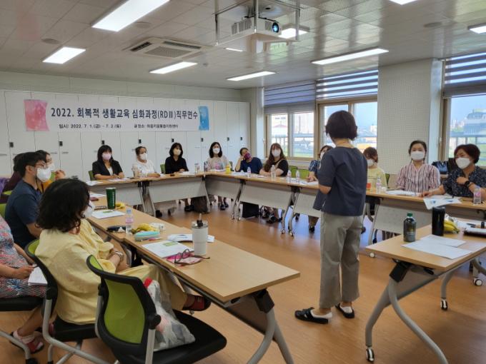 À̹ø Á÷¹«¿¬¼ö´Â RD¥°±âÃʰúÁ¤°ú RD¥±½ÉȰúÁ¤À» À̼öÇÑ ±³»çµéÀ» Áß½ÉÀ¸·Î ȸº¹Àû »ýȰ±³À°ÀÇ È®»êÀ» À§ÇØ RD3 ½ÉȰúÁ¤ ½Ç½À±îÁö º´ÇàÇÏ¿© ¿¬¼ö¸¦ ÁøÇàÇÏ¿´´Ù. ¿¬¼ö´Â ¼Å¬¿î¿µ¹æ¹ý ¹× Çб³ÇöÀåÀÇ °¥µî»ç·Ê¸¦ Áß½ÉÀ¸·Î °¥µîÇØ°á¿¡¼ ±³»çÀÇ ¿ª·®À» °ÈÇÏ´Â ³»¿ë µî ´Ù¾çÇÑ °ü°èȸº¹ ÇÁ·Î±×·¥À¸·Î ÁøÇàµÆ´Ù.