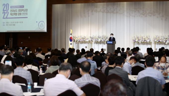 Àü³²±³À° ´ëÀüȯÀ» À§ÇÑ Çб³ÀåÀÇ ¿ªÇÒ°ú Àü³²±³À°ÀÌ ³ª¾Æ°¥ ¹æÇâ¿¡ ´ëÇÑ ÀǰßÀ» ³ª´©±â À§ÇØ ±³À°Ã»ÀÌ ¾Æ´Ñ ÁߵÀå´ÜÀÌ ÁÖÃÖÇÑ À̳¯ Çà»ç¿¡´Â Àü³² µµ³» Áß¡¤°íµîÇб³ ±³Àå 350¿© ¸íÀÌ Âü¿©Çß´Ù. Âü¼® ±³ÀåµéÀº °ûÁ¾¿ù ±³À°°¨Á÷ÀμöÀ§¿øÈ¸ À§¿øÀåÀ¸·ÎºÎÅÍ ÁÖ¹ÎÁ÷¼± 4±â Àü³²±³À° Á¤Ã¥ ¹æÇâ¿¡ ´ëÇØ ¼³¸íÀ» µè°í Àü³²±³À° ´ëÀüȯÀ» À§ÇØ ¡°¹«¾ùÀ» ¾î¶»°Ô ÇØ¾ß ÇÒÁö?¡±¿¡ ´ëÇÑ ÇöÀåÀÇ ¸ñ¼Ò¸®¸¦ »ý»ýÇÏ°Ô ÀüÇß´Ù.