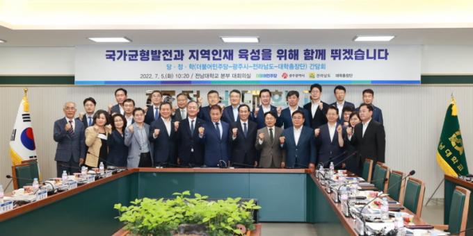 ¹Î¿µµ· ±¤ÁÖÀü³²Áö¿ªÃÑÀåÇùÀÇȸÀå µî ´ëÇÐÃÑÀåµéÀº ¡°¹ÝµµÃ¼¸¦ Æ÷ÇÔÇÑ µðÁöÅÐ 100¸¸ ÀÎÀç¾ç¼ºÀ» Áö¹æ´ëÇп¡¼ À°¼ºÇϵµ·Ï ±¹È¸°¡ Èû½á ÁÙ °Í¡±À» ´çºÎÇß°í, ¼Û°©¼® ¹ÎÁÖ´ç ±¤ÁֽôçÀ§¿øÀå µî Áö¿ª ±¹È¸ÀÇ¿øµéÀº ¡°Áö¿ª°ú Áö¹æ´ëÇÐÀÇ ¾î·Á¿òÀ» Àß µè°í ÁÁÀº ´ëÃ¥À» °±¸ÇØ ³ª°¡°Ú´Ù.¡±°í ¸»Çß´Ù.