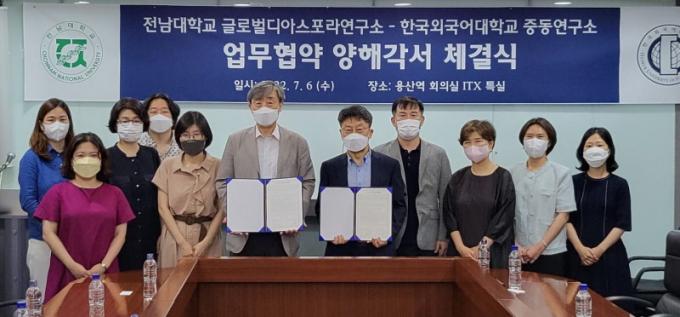 ±è°æÇÐ ¼ÒÀåÀº ¡°±¹³» ´ëÇ¥ÀûÀÎ Áßµ¿Áö¿ª Àü¹® ¿¬±¸±â°üÀÎ Çѱ¹¿Ü±¹¾î´ë Áßµ¿¿¬±¸¼Ò¿Í ¾÷¹«Çù¾àÀ» ¸ÎÀ½À¸·Î½á ±×µ¿¾È ¼ÒȦÈ÷ ´Ù·ç¾î¿Ô´ø Áßµ¿Áö¿ªÀÇ ÀÌÁÖ¿Í µð¾Æ½ºÆ÷¶ó ¿¬±¸ ÇöȲ°ú ¼º°ú¸¦ °øÀ¯ÇÒ ¼ö ÀÖ°Ô µÅ ¿¬±¸¼Ò°¡ ÃßÁøÇÏ´Â ±Û·Î¹ú µð¾Æ½ºÆ÷¶ó ¿¬±¸ °úÁ¦¸¦ È®Àå½ÃŰ´Â Áß¿äÇÑ Åä´ë°¡ ¸¶·ÃµÆ´Ù.¡±°í ¸»Çß´Ù.