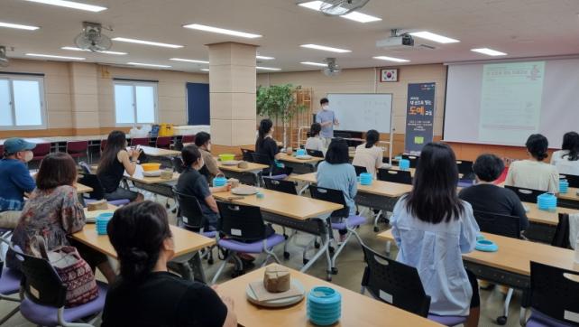 ¾çÇü¼®(µµ¿¹°¡) °»çÀÇ Áöµµ·Î ÈëÀ» ºú¾î »ýȰ ½Ä±â¸¦ ¸¸µé¾î º¸´Â ½Ã°£À» °¡Áö¸ç, ¼ºÀÎÀ» ´ë»óÀ¸·Î 8¿ù 11ÀÏ(¸ñ)±îÁö ÃÑ 6ȸ °úÁ¤À¸·Î ¿î¿µÇÑ´Ù. ù ½Ã°£¿¡´Â µµÀÚ±âÀÇ Á¦ÀÛ°úÁ¤À» ÇнÀÇϰí, ÆÝαâ¹ýÀ» ÀÌ¿ëÇÏ¿© ¹ä°ø±â³ª ÄŰú °°Àº ¼ÒÇü ±â¹°À» ¸¸µé¾î º¸´Â ½Ã°£À» °¡Á³´Ù.