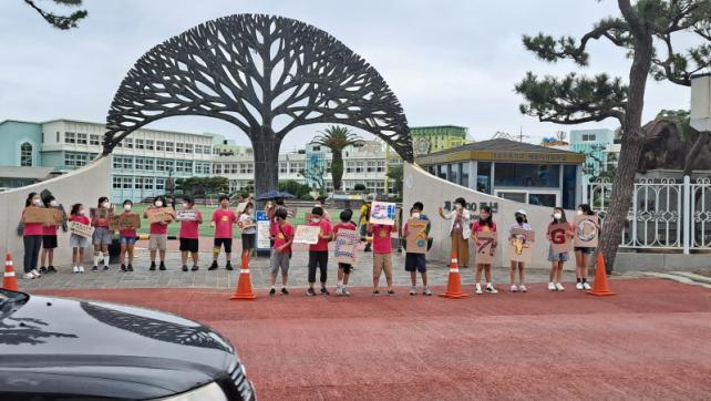 ¾ÆÄ§ µî±³ ½Ã°£¿¡´Â Çб³ Á¤¹® ¹× ÃâÀÔ±¸¿¡¼ ±³³» ȯ°æº¸È£ Ä·ÆäÀΠȰµ¿À» ÇÏ¿´´Ù. À̳¯ ÇлýµéÀÌ Á¦ÀÛÇÑ ÇØ¾ç ¾²·¹±â Áݱâ Ȱµ¿ ¿µ»ó°ú ȯ°æº¸È£ Ä·ÆäÀÎ ³ë·¡ ¿µ»óÀ» °¢ Çб޿¡¼ ½ÃûÇÒ ¼ö ÀÖµµ·Ï ÇÏ¿© Çлýµé¿¡°Ô ȯ°æº¸È£ÀÇ Á߿伺À» ¾Ë¸®´Â °è±â°¡ µÇ¾ú´Ù.
