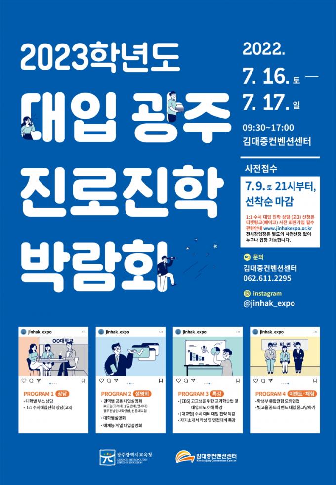 ¡ã¼öµµ±Ç ´ëÇÐ, ±¤ÁÖÀü³²Áö¿ª´ëÇÐ, Àü¹®´ëÇÐ °øµ¿ ´ëÀÔ¼³¸íȸ¿Í °¢ ´ëÇк° ¼³¸íȸ, À½¾Ç・¹Ì¼ú・üÀ°°è¿ ¼³¸íȸµµ µ¿½Ã¿¡ °³ÃÖÇÑ´Ù. Áø·Î・ÁøÇлó´ã ¿Â¶óÀÎ ¹êµå¿Í ¿¬°èÇØ ½Ç½Ã°£À¸·Î ´ëÀÔ °ü·Ã ¹¯°í ´äÇϱâ Çà»çµµ À̾îÁø´Ù.