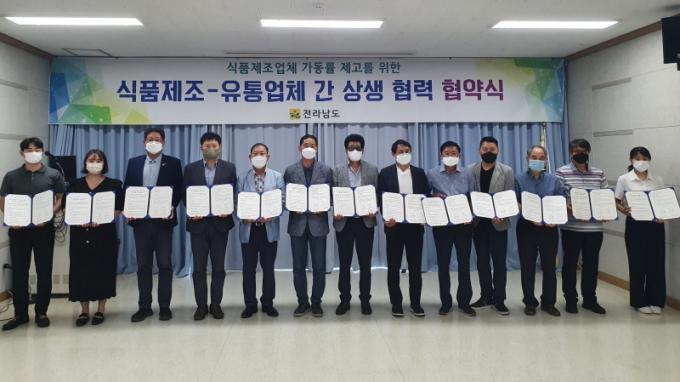 Àü³²µµ´Â 11ÀÏ ½Äǰ»ê¾÷¿¬±¸¼¾ÅÍ¿¡¼ ½ÄǰÁ¦Á¶¾÷ü, À¯Åë¾÷ü °ü°èÀÚ¿Í ³ªÁÖ․±¸·Ê․°î¼º․¿µ±¤․ÇÔÆò 5°³ ½Ã±º µî 25¸íÀÌ Âü¼®ÇÑ °¡¿îµ¥ ¡®½ÄǰÁ¦Á¶-À¯Åë¾÷ü°£ »ó»ýÇù·Â Çù¾à½Ä¡¯À» Çß´Ù.