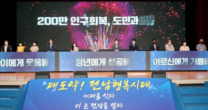 À̾î Âü¼®ÀÚ ¸ðµÎ°¡ ÇѸ¶À½À¸·Î ¼¼´ë¸¦ À̾î, ´õ Å« Àü³²À» ¿¾î°¡±â À§ÇØ ¡®¾ÆÀÌ¿¡°Ô ¿ôÀ½À», û³â¿¡°Ô ¼º°øÀ», ¾î¸£½Å¿¡°Ô ±â»ÝÀ», µµ¹Î¿¡°Ô ÇູÀ»¡¯À» ÁÖÁ¦·Î ÆÛÆ÷¸Õ½º¸¦ ÁøÇàÇϸç, ¡®200¸¸ Àü³²Àα¸ ȸº¹¡¯À» ÇÔ²² ³ë·ÂÇÒ °ÍÀ» ´ÙÁüÇß´Ù.