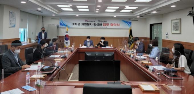 Àü³²´ëÇб³ ¿©¼öÄ·ÆÛ½º¿Í Àü¶ó³²µµÀÚ¿øºÀ»ç¼¾ÅÍ´Â 5ÀÏ Àü³²´ëÇб³ ¿©¼öÄ·ÆÛ½º ´ëÇк»ºÎ 3Ãþ ¼ÒȸÀǽǿ¡¼ ¹Úº¹Àç Àü³²´ëÇб³ ºÎÃÑÀå°ú Çã°¼÷ Àü¶ó³²µµÀÚ¿øºÀ»ç¼¾ÅÍÀå µîÀÌ Âü¼®ÇÑ °¡¿îµ¥ ¾÷¹«Çù¾à½ÄÀ» °¡Á³´Ù.
