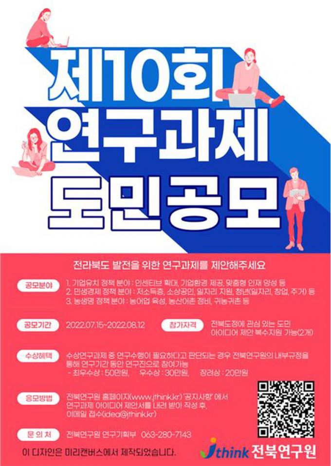 ÀüºÏ¿¬±¸¿øÀº µµ¹Î ¹ÐÂøÇü Á¤Ã¥°³¹ßÀ» À§ÇØ Á¦10ȸ ¡®¿¸° ¿¬±¸, ÁÁÀº ¿¬±¸¡¯ µµ¹Î °ø¸ð¸¦ ½Ç½ÃÇÑ´Ù°í 7¿ù 15ÀÏ ¹àÇû´Ù. ÀüºÏ¿¬±¸¿øÀº ¡®µµ¹Î°ú ÇÔ²² ÇÏ´Â ¿¬±¸¿ø¡¯À» ¸ðÅä·Î µµ¹ÎÀÌ ¿¬±¸°úÁ¦ ¹ß±¼¿¡ Âü¿©ÇÒ ¼ö ÀÖ´Â µµ¹Î°ø¸ð¸¦ ¿¬ 2ȸ ½ÃÇàÇϰí ÀÖ´Ù.