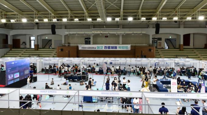 [½Ã»çÁ¾ÇսŹ® = Àå¹Î±Ô ±âÀÚ] ±¹¸³ ¼øÃµ´ëÇб³(ÃÑÀå °í¿µÁø)´Â Áö¿ª û¼Ò³âÀÇ Á÷¾÷․ÁøÇÐ °æÇèÀ» È®ÀåÇϰíÀÚ ¼øÃµ½ÃÀÇ ÈÄ¿øÀ» ¹Þ¾Æ Áö³ 15ÀÏ Ä·ÆÛ½º üÀ°°ü¿¡¼ °³ÃÖÇÑ ¡®2022Çг⵵ ¼øÃµ´ëÇб³ ¿¡ÄÚ Áø·ÎüÇè ¹Ú¶÷ȸ¡¯°¡ ¼ºÈ²¸®¿¡ ¸·À» ³»·È´Ù°í ¹àÇû´Ù.