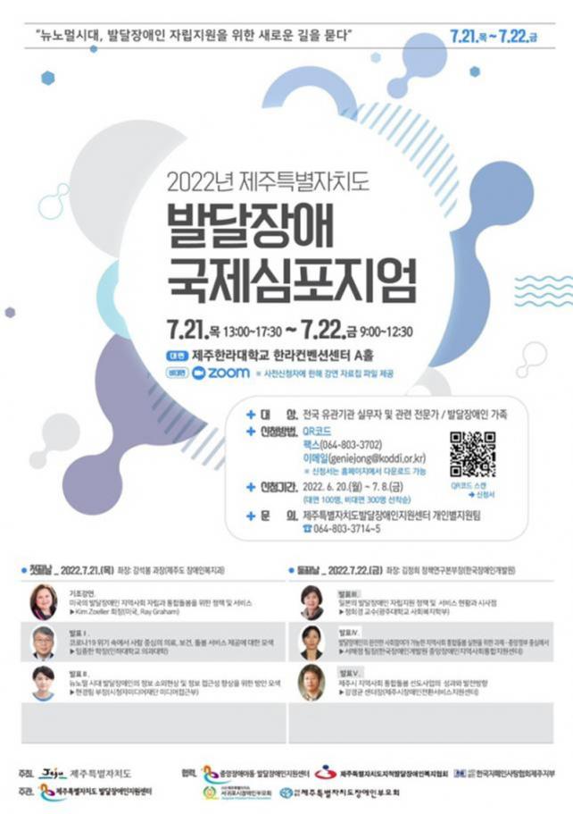 Á¦ÁÖµµ°¡ ÁÖÃÖÇϰí, Á¦ÁÖÆ¯º°ÀÚÄ¡µµ ¹ß´ÞÀå¾ÖÀÎÁö¿ø¼¾ÅͰ¡ ÁÖ°üÇÏ´Â À̹ø ½ÉÆ÷Áö¾ö¿¡´Â ¹ß´ÞÀå¾ÖÀÎ °¡Á·, À¯°ü±â°ü Á¾»çÀÚ µî 400¿©¸íÀÌ ´ë¸é°ú ÁÜ(Zoom) Ç÷§ÆûÀ» Ȱ¿ëÇÑ ºñ´ë¸éÇü½ÄÀ¸·Î Âü¿©ÇÒ ¿¹Á¤ÀÌ´Ù.