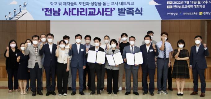 Àü¶ó³²µµ±³À°Ã»Àº 7¿ù 18ÀÏ(¿ù) û»ç 2Ãþ ´ëȸÀǽǿ¡¼ Àü¶ó³²µµ, (»ç)¹äÀϲްú ÇÔ²² ´Ù¹®È°¡Á¤ ÇлýÀÇ Áø·Î¡¤ÁøÇÐ ÇÁ·Î±×·¥ Áö¿øÀ» À§ÇÑ ¡®Àü³²»ç´Ù¸®±³»ç´Ü¡¯ ¹ßÁ·½ÄÀ» °¡Á³´Ù. À̳¯ ¹ßÁ·½Ä¿¡´Â ¹®±ÝÁÖ Àü¶ó³²µµ ÇàÁ¤ºÎÁö»ç, ÀÌ¿Á°æ »ç´Ü¹ýÀÎ ¹äÀÏ²Þ ÀÌ»çÀåÀÌ Âü¼®ÇØ Äڷγª19·Î ¹«³ÊÁø Ãë¾à°èÃþÀÇ ±³À°·Â ȸº¹À» À§ÇÑ ³×Æ®¿öÅ© ±¸ÃàÀ» ´ÙÁüÇß´Ù.
