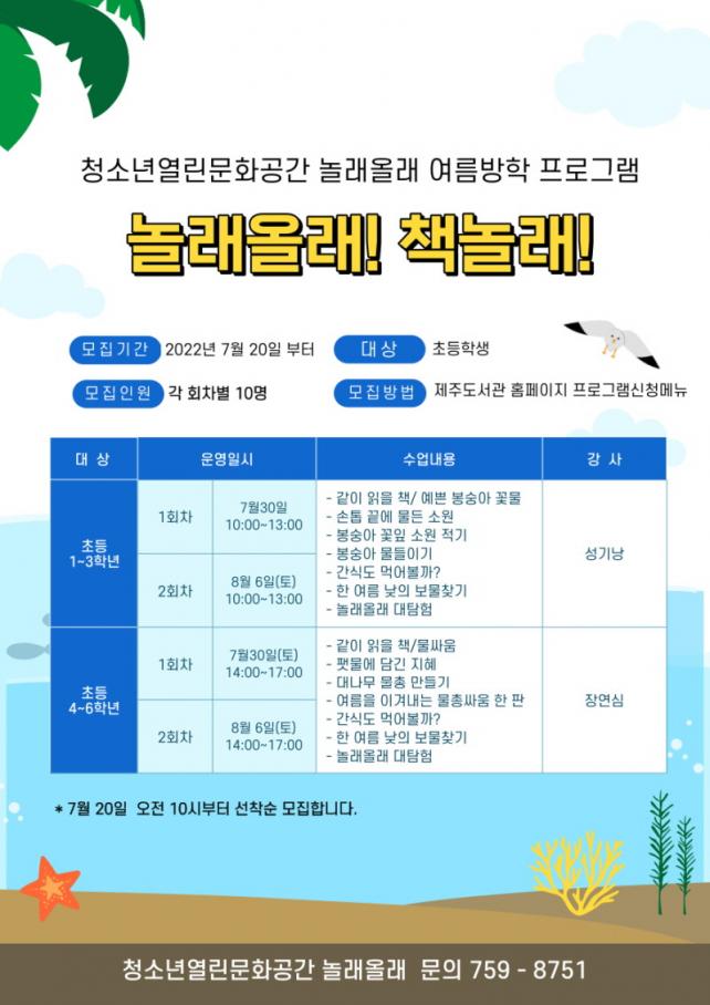 Á¦ÁÖµµ¼°ü, û¼Ò³â¿¸°¹®È°ø°£(³î·¡¿Ã·¡)¿©¸§¹æÇÐ ÇÁ·Î±×·¥ ¼ö°»ý ¸ðÁý