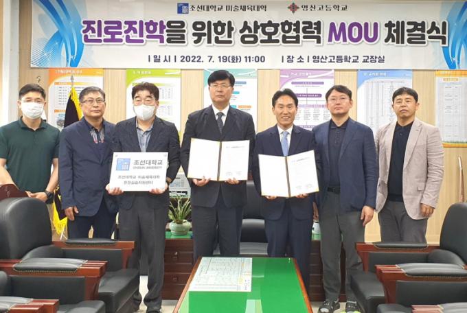 Áö³ 19ÀÏ ¿µ»ê°íµîÇб³ ±³Àå½Ç¿¡¼ ÁøÇàµÈ Çù¾à½Ä¿¡´Â Á¶¼±´ëÇб³ ¼¿µÈ¯ ¹Ì¼úüÀ°´ëÇÐÀå°ú ¿µ»ê°íµîÇб³ ÀÌâ±Õ ±³ÀåÀÌ Âü¼®Çß´Ù. Á¶¼±´ëÇб³¿¡¼´Â Á¶À±¼º ºÎÇÐÀå, ±è¿ÁÁÖ Ã¼À°ÇаúÀåÀÌ Âü¼®ÇßÀ¸¸ç, ¿µ»ê°íµîÇб³ ¹ÚÀç¼ø ±³°¨, ¹Ú±¤¼ö ±³¹«ºÎÀå, °í»óÁø üÀ°ºÎÀåÀÌ Âü¼®Çß´Ù.
