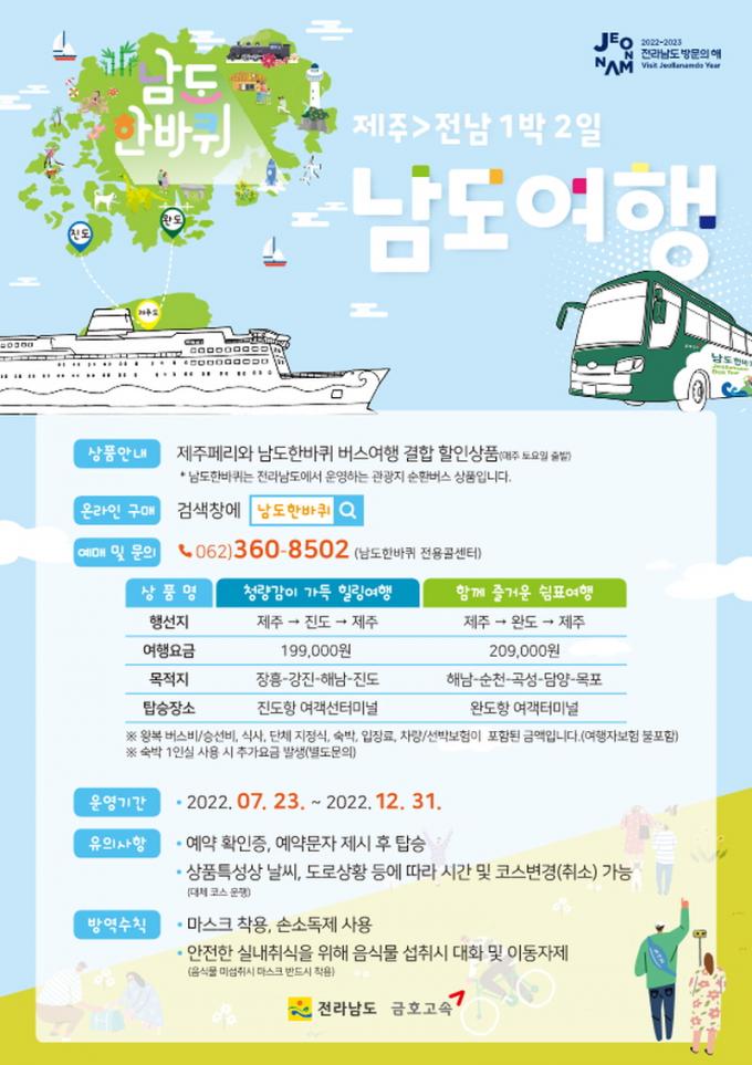 ³²µµÇѹÙÄû Á¦Á֯䏮 »óǰÀº ¸ÅÁÖ Åä¿äÀÏ Á¦ÁÖ¿¡¼ Æä¸®¸¦ Ÿ°í ¿ÏµµÇ×À̳ª ÁøµµÇ׿¡ ³»·Á ¹ö½º·Î 1¹Ú 2ÀÏ µ¿¾È Àü³²ÀÇ ÁÖ¿ä °ü±¤Áö¸¦ µÑ·¯º¸´Â »óǰÀÌ´Ù. ÁøµµÇ× Ãâ¹ßÀº 19¸¸ 9õ ¿ø, ¿ÏµµÇ× Ãâ¹ßÀº 20¸¸ 9õ ¿øÀÌ¸ç ¿©±â¿¡´Â ¿Õº¹ ½Â¼±ºñ, ¼÷¹Úºñ, °ü±¤Áö ÀÔÀå·á µîÀÌ Æ÷ÇԵŠÀÖ¾î °³º°¿©Çຸ´Ù Àú·ÅÇÏ°Ô Áñ±æ ¼ö ÀÖ´Ù.