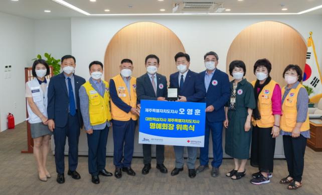 ¿À¿µÈÆ Áö»ç´Â 22ÀÏ ¿ÀÀü 9½Ã 30ºÐ µµÁö»ç Áý¹«½Ç¿¡¼ ´ëÇÑÀû½ÊÀÚ»ç Á¦ÁÖÆ¯º°ÀÚÄ¡µµÁö»ç(ȸÀå ¿ÀÈ«½Ä)·ÎºÎÅÍ À§ÃËÆÐ¸¦ Àü´Þ¹Þ¾Ò´Ù. À̹ø À§Ã˽ÄÀº ±×µ¿¾È ´ëÇÑÀû½ÊÀÚ»ç Á¦ÁÖÁö»ç¿¡ ´ëÇÑ Á¦ÁÖµµÀÇ Àû±Ø Áö¿ø¿¡ ´ëÇÑ °¨»ç¿Í ´õºÒ¾î ¾ÕÀ¸·Î ´õ¿í ±ä¹ÐÈ÷ ÇùÁ¶Çϸç ÀεµÁÖÀÇ ½ÇÇöÀ» ÇÔ²²ÇÏÀÚ´Â ¶æÀ» ´ã¾Æ ¸¶·ÃµÆ´Ù.