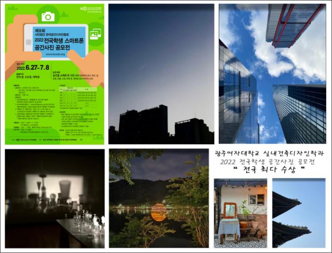 Àü±¹Çлý °ø°£»çÁø °ø¸ðÀüÀº °ø°£µðÀÚÀο¡ ´ëÇÑ ÇлýµéÀÇ Àü°ø °ü½É°ú ¿ÀǸ¦ Çâ»ó½Ã۱â À§ÇØ °³ÃֵǴ ¸í½Ç»óºÎÇÑ Àü±¹´ÜÀ§ °ø¸ðÀüÀ¸·Î¼ ¿ÃÇØ 41°³ ´ëÇÐÀ¸·ÎºÎÅÍ 100 ¿© ÀÛǰÀÌ Á¢¼öµÇ¾î ¿¶í °æÀïÀ» ÆîÃÆ´Ù. À̹ø ´ëȸ¿¡¼ ±¤ÁÖ¿©ÀÚ´ëÇб³ ½Ç³»°ÇÃàµðÀÚÀÎÇаú´Â Àü±¹ ÃÖ´Ù ¼ö»óÀ» ÇÔÀ¸·Î½á ±¤ÁÖ¡¤Àü³²±Ç ½Ç³»°ÇÃàºÐ¾ßÀÇ ¼±µÎÀÓÀ» ´Ù½Ã±Ý È®ÀÎÇÒ ¼ö ÀÖ´Â ±âȸ¿´´Ù. Àº»ó ¼ö»óÀÚÀÎ ½Ç³»°ÇÃàµðÀÚÀÎÇаú 4Çг⠹ڼö¹Î ÇлýÀº ¡°Àü°øÀÚÀÇ ½Ã¼±À¸·Î »çÁø¼Ó¿¡ ¼¼»óÀ» ´ã¾Æ °ø°£ÀÇ Àǹ̸¦ ºÎ¿©ÇÏ´Â °úÁ¤ÀÌ Èï¹Ì·Î¿ü°í Äڷγª ½Ã´ë¿¡ ´Ù¾çÇÑ ¼Ò¼ÓÀÇ Çлýµé°ú °£Á¢ÀûÀ¸·Î³ª¸¶ °æÀïÇÏ°í ±³·ùÇÏ´Â ±âȸ°¡ µÇ¾î Áñ°Å¿ü´Ù¡±¶ó°í ÀüÇß´Ù.