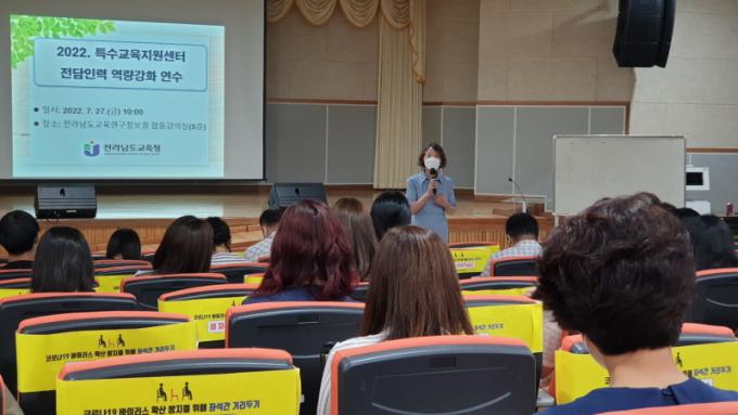 ÇÑÆí, Àü³²µµ±³À°Ã» °ü°èÀÚ´Â ¡°±³À°Áö¿øÃ» Ư¼ö±³À°Áö¿ø¼¾Å͸¦ Áß½ÉÀ¸·Î Ư¼ö±³À°´ë»óÇлýÀÇ ±³À°È°µ¿ ¹× °ü·Ã ¼ºñ½º¸¦ Áö¿øÇÏ´Â ¾÷¹« ´ã´çÀÚµéÀÇ ³ë°í¿¡ °¨»çÇÏ´Ù.¡±¸ç, ¡°¾ÕÀ¸·Îµµ Áö¿ª Áß½É Æ¯¼ö±³À° Áö¿ø ü°è °È¸¦ À§ÇØ ÇÔ²² ³ë·ÂÇÏÀÚ.¡±°í ¸»Çß´Ù.