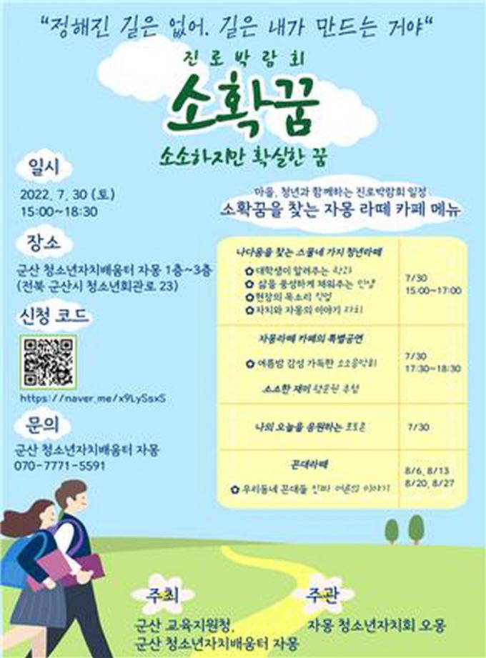 Áø·Î¹Ú¶÷ȸ <¼ÒÈ®²Þ>Àº Àλý, ÁøÇÐ, Á÷¾÷, ÀÚÄ¡·Î ³ª´¶ 4°³ÀÇ ¼½¼Ç¿¡ ÃÑ 24°³ ÁÖÁ¦·Î ±¸¼ºµÈ ºÎ½º°¡ ¿î¿µµÈ´Ù. Âü¿© ´ë»óÀº û¼Ò³â(Áß1~°í3, ÇØ´ç¿¬·ÉÀÇ Çб³ ¹Û û¼Ò³â)ÀÌ´Ù.