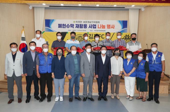 À§¿øÈ¸´Â ÆóÇö¼ö¸·À» ÀçȰ¿ëÇØ °î½ÄÀ» ³Î¾î ¸»¸®´Â µ¥ ¾²ÀÌ´Â ´ëÇüº¸ÀÚ±â(4.8m*2.8m)¸¦ ¸¸µé¾î ¿Á°î¸é 21°³ ¸¶À»¿¡ 7°³¾¿ ÃÑ 147°³¸¦ Àü´ÞÇß´Ù.