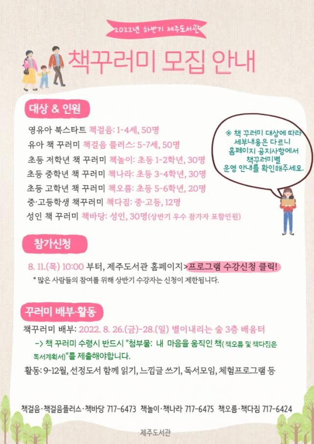 ºÏ½ºÅ¸Æ®¡¤Ã¥ ²Ù·¯¹Ì´Â ¿µÀ¯¾ÆºÎÅÍ ¼ºÀαîÁö °èÃþº° 7´Ü°è, ÃÑ222¸íÀ» ´ë»óÀ¸·Î ¿î¿µµÇ¸ç, Âü¿© Èñ¸ÁÀÚ´Â ¿À´Â 8¿ù 11ÀÏ 10½ÃºÎÅÍ Á¦ÁÖµµ¼°ü ȨÆäÀÌÁö¿¡¼ Á¢¼öÇÏ¸é µÈ´Ù.