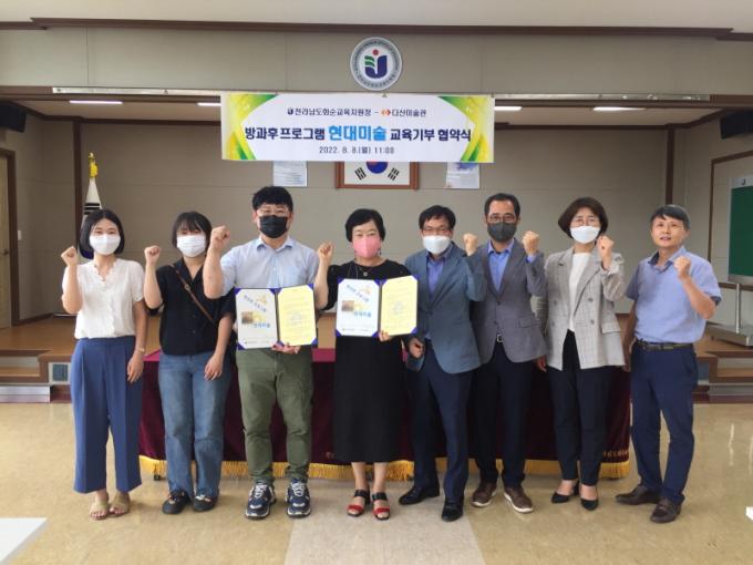 ÀÌÇöÈñ ±³À°ÀåÀº¡®À̹ø ¾÷¹«Çù¾àÀ» ÅëÇØ Çö´ë¹Ì¼ú¿¡ °ü½ÉÀÖ´Â ÇлýµéÀÇ ¹æ°úÈÄÇÁ·Î±×·¥ Âü¿©¸¦ À¯µµÇϰí, Àç´ÉÀ» Ű¿òÀ¸·Î½á »îÀÇ Áú Á¦°í¿Í ÇÔ²² Áö¿ª ¿¹¼ú ÀÎÀç À°¼º¿¡ Ä¿´Ù¶õ µµ¿òÀÌ µÉ °ÍÀ¸·Î ¿¹»óµÈ´Ù¡¯¸ç, ´Ù»ê¹Ì¼ú°üÀÇ ÀǹÌÀÖ´Â ¿ªÇÒÀ» ´çºÎÇßÀ¸¸ç, ÀÌÁ¤³² ´Ù»ê¹Ì¼ú°üÀåÀº¡®È¼øÀ» ÀÚ¿¬°ú »ç¶÷, ¿¹¼úÀÌ °øÁ¸ÇÏ´Â ¹®È¿¹¼ú Áö¿ªÀ¸·Î ¸¸µé±â À§Çؼ´Â Çб³ ±³À°¿¡¼ºÎÅÍ ´Ù¾çÇÑ ¿¹¼ú ºÐ¾ß¿¡ Á¢±ÙÇÒ ¼ö Àִ ȯ°æÀÌ ÇÊ¿äÇÏ´Ù¡¯¸ç ¹æ°úÈÄÇÁ·Î±×·¥¿¡ ´ëÇÑ Áö¼ÓÀûÀÎ Çù·ÂÀ» ¾à¼ÓÇß´Ù.