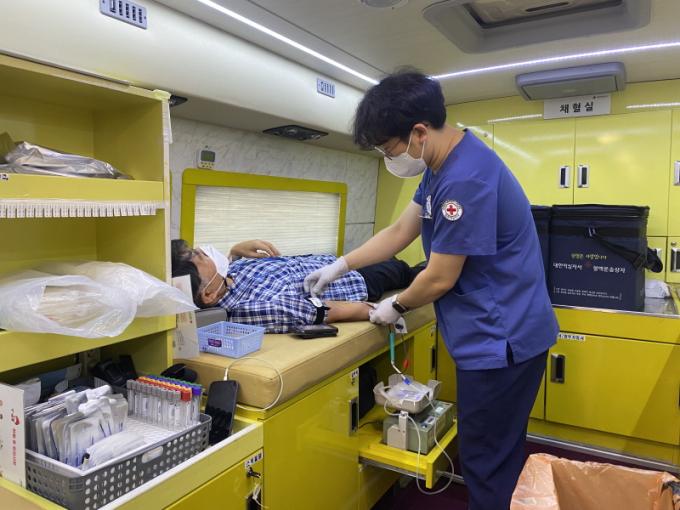 10ÀÏ µ¿ºÎ±³À°Áö¿øÃ»¿¡ µû¸£¸é À̹ø ¡®»ç¶ûÀÇ ÇåÇ÷ ¿îµ¿¡¯Àº Äڷγª19 Àå±âÈ·Î °³ÀÎ ÇåÇ÷°ú ´Üü ÇåÇ÷ÀÌ °¨¼ÒÇÏ´Â ¾î·Á¿î »óȲÀ» ±Øº¹Çϱâ À§ÇØ Á÷¿øµéÀÇ ÀÚ¹ßÀûÀÎ Âü¿©·Î ÀÌ·ïÁ³´Ù. ¡®»ç¶ûÀÇ ÇåÇ÷ ¿îµ¿¡¯Àº µ¿ºÎ±³À°Áö¿øÃ»¿¡ ÇåÇ÷¹ö½º°¡ ¹æ¹®ÇØ ÁøÇàµÆ´Ù. Äڷγª19È®»ê ¹æÁö¸¦ À§ÇØ ÇåÇ÷ Âü¿©ÀÚ °£ °Å¸®µÎ±â, ¸¶½ºÅ© Âø¿ë, ¼Õ¼Òµ¶ µî ¹æ¿ª¼öÄ¢À» öÀúÇÏ°Ô ÁؼöÇß´Ù.