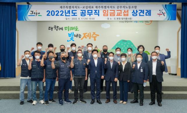 À̳¯ »ó°ß·Ê¿¡´Â ³ë»ç ´ëÇ¥±³¼·À§¿øÀÎ ¿À¿µÈÆ Á¦ÁÖµµÁö»ç¿Í È«Á¤Çõ °ø¹«Á÷³ëµ¿Á¶ÇÕ À§¿øÀåÀ» ºñ·ÔÇØ ³ëÁ¶ °ü°èÀÚ¿Í µµ‧ÇàÁ¤½Ã ±³¼·À§¿ø µîÀÌ Âü¿©Çß´Ù. ¾Õ¼ °ø¹«Á÷³ëµ¿Á¶ÇÕÀº 2022³â °ø¹«Á÷ ÀÓ±ÝÇù¾à ¿ä±¸(¾È)À» È®Á¤Çϰí Áö³ 7¿ù 4ÀÏ Á¦ÁÖµµ¿¡ Á¦ÃâÇß´Ù. ³ëµ¿Á¶ÇÕÀº ±âº»±Þ, Á¶Á¤¼ö´ç, µî±Þ ¹× È£ºÀ±¸°£ Àλó ¹× Ư¼ö¾÷¹« ¼ö´ç °ü·Ã »çÇ×À» ÀÓ±ÝÇù¾à(¾È)¿¡ ´ã¾Ò´Ù.
