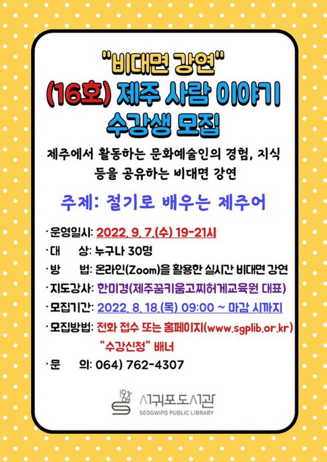 ºñ´ë¸é ¿Â¶óÀÎ(Zoom) ¹æ½ÄÀ¸·Î ÁøÇàµÇ´Â À̹ø °¿¬¿¡¼´Â Çѹ̰æ(Á¦ÁÖ²ÞŰ¿ò°íÂîÇã°Ô±³À°¿ø ´ëÇ¥) °»ç´ÔÀ» ¸ð½Ã°í¡®Àý±â·Î ¹è¿ì´Â Á¦Á־¶ó´Â ÁÖÁ¦·Î ¿À´Â 9¿ù 7ÀÏ ¿ÀÈÄ 7~9½Ã¿¡ ¿î¿µµÈ´Ù.