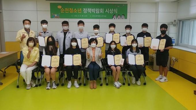 À̹ø ½Ã»ó½ÄÀº ¹Ú¶÷ȸ¿¡ Á¦¾ÈµÈ °¢ ÆÀÀÇ Á¤Ã¥¿¡ ´ëÇÑ ¼·ù½É»ç Á¡¼ö¿Í ¿Â¶óÀÎ ¹× ÇöÀå ÅõÇ¥ Á¡¼ö¸¦ ÇÕ»êÇÏ¿© ´ë»ó 1ÆÀ, ÃÖ¿ì¼ö»ó 2ÆÀ µî ÃÑ 11ÆÀ¿¡°Ô »óÀå°ú ºÎ»óÀ» ¼ö¿©ÇÏ¿´´Ù. ¿µ¿¹ÀÇ ´ë»óÀº ¼øÃµº°·®ÁßÇб³ÀÇ¡®ÀÚ¿ø¼øÈ¯»çȸ¡¯, ÃÖ¿ì¼ö»óÀº ¼øÃµ¿ÕÀÇÁßÇб³¿Í ¼øÃµÆÈ¸¶ÁßÇб³ ÇлýµéÀÌ ÇÔ²² Âü¿©ÇÑ¡®¼øÃµ Áø·Î¼³°è ¹Ì·¡¾Û °³¹ß¡¯, ¼øÃµ³²»êÁßÇб³ÀÇ¡®¼øÃµ½Ã û¼Ò³â ÁÖ°£ ¿î¿µ¡¯ÀÌ ¼±Á¤µÇ¾ú´Ù.