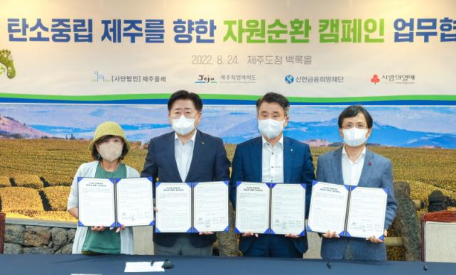 Á¦ÁÖµµ, (»ç)Á¦Áֿ÷¹, ½ÅÇѱÝÀ¶Èñ¸ÁÀç´Ü, »çȸº¹Áö°øµ¿¸ð±Ýȸ´Â 24ÀÏ ¿ÀÈÄ 4½Ã 30ºÐ Á¦ÁÖµµÃ» º»°ü 2Ãþ ¹é·ÏȦ¿¡¼ ź¼ÒÁ߸³ Á¦ÁÖ¸¦ ÇâÇÑ ÀÚ¿ø¼øÈ¯ Ä·ÆäÀÎÀ» À§ÇÑ ¾÷¹«Çù¾àÀ» ü°áÇß´Ù. À̹ø Çù¾àÀ» ÅëÇØ 4°³ ±â°üÀº ÆóÇÃ¶ó½ºÆ½ °¡¿îµ¥ À½·á¡¤»ý¼ö µî ÆäÆ®º´ ¶Ñ²±(PE)À» Ȱ¿ëÇϴ ģȯ°æ Ä·ÆäÀÎÀ» ÆîÄ£´Ù.