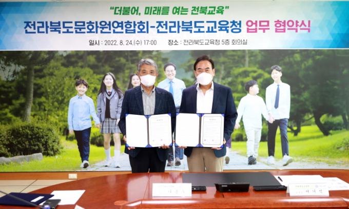 ¼°Å¼® ÀüºÏ±³À°°¨°ú ³ªÁ¾¿ì ÀüºÏ¹®È¿ø¿¬ÇÕȸÀåÀ» ºñ·ÔÇÑ 14°³ ½Ã¡¤±º ¹®È¿øÀåÀº 24ÀÏ ¿ÀÈÄ 5½Ã µµ±³À°Ã» 5Ãþ ȸÀǽǿ¡¼ ¾÷¹«Çù¾àÀ» ü°áÇß´Ù. À̹ø ¾÷¹«Çù¾àÀº ½Ã¡¤±º ¹®È¿øÀÇ ¿ª·®°ú ÀÚ¿øÀ» Ȱ¿ëÇØ Çлýµé¿¡°Ô À¯ÀÍÇÑ ÇÁ·Î±×·¥À» Á¦°øÇÒ ¼ö ÀÖµµ·Ï Çù·ÂÇÏÀÚ´Â ¼ ±³À°°¨ÀÇ Á¦¾ÈÀ¸·Î ÀÌ·ç¾îÁ³´Ù.