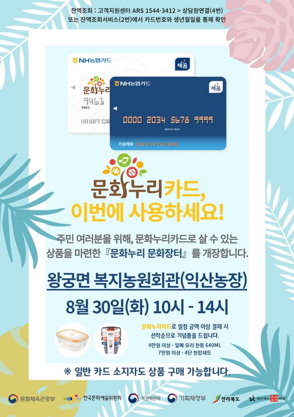 ¹®È´©¸® ¹®ÈÀåÅÍ¿¡¼´Â µµ³» ¹®È´©¸®Ä«µå °¡¸ÍÁ¡¿¡¼ ¾ö¼±ÇÑ ¹®È»óǰÀ» Á÷Á¢ º¸°í, ÇöÀå¿¡¼ ±¸¸ÅÇÒ ¼ö ÀÖ´Ù. ÀÏ¹Ý ½Å¿ëÄ«µå ¶Ç´Â ¹®È´©¸®Ä«µå·Î ±¸ÀÔ °¡´ÉÇϸç, ¹®È´©¸®Ä«µå·Î ÀÏÁ¤ ±Ý¾× ÀÌ»ó ±¸¸Å ½Ã ¼±Âø¼øÀ¸·Î ¼ÒÁ¤ÀÇ ±â³äǰÀ» ÁõÁ¤ÇÑ´Ù. ÅëÇÕ¹®ÈÀÌ¿ë±Ç Áö¿ø»ç¾÷Àº º¹±ÇÀ§¿øÈ¸ ÈÄ¿ø, ¹®ÈüÀ°°ü±¤ºÎ ÁÖÃÖ, Çѱ¹¹®È¿¹¼úÀ§¿øÈ¸, Àü¶óºÏµµ ¹× µµ³» 14°³ ½Ã¡¤±ºÀÌ ÁÖ°üÇÏ´Â »ç¾÷ÀÌ´Ù. ¹®È´©¸®Ä«µå´Â »îÀÇ Áú Çâ»ó°ú ¹®È °ÝÂ÷ ¿Ïȸ¦ À§ÇØ ±âÃÊ»ýȰº¸Àå ¼ö±ÞÀÚ, Â÷»óÀ§°èÃþ¿¡°Ô ¹®È¿¹¼ú, ±¹³»¿©Çà, üÀ°È°µ¿À» Áö¿øÇÏ´Â Ä«µåÀÌ´Ù.