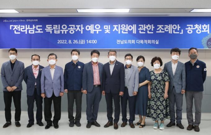 ±èÀçö Àü³²µµÀÇ¿ø(´õºÒ¾î¹ÎÁִ硤º¸¼º1)ÀÌ ÁÖ°üÇÑ À̳¯ °øÃ»È¸´Â µ¶¸³À¯°øÀÚ ¿¹¿ì¿Í Áö¿øÀ» ´ãÀº Á¶·Ê¾È ¹ßÀÇ¿¡ ¾Õ¼ Àǰ߼ö·ÅÀ» À§ÇØ ¸¶·ÃµÆ´Ù. °øÃ»È¸¿¡´Â ±¤º¹È¸ ¼ÛÀÎÁ¤ Àü¶ó³²µµÁöºÎÀå°ú ±¤º¹È¸¿ø, Àü¶ó³²µµ ¿ìÈ«¼· »çȸº¹Áö°úÀå µîÀÌ Âü¼®Çß´Ù.