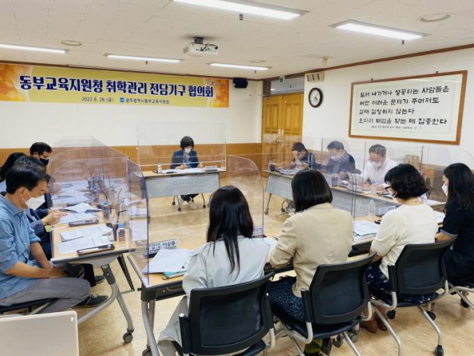 29ÀÏ µ¿ºÎ±³À°Áö¿øÃ»¿¡ µû¸£¸é À̹ø ÇùÀÇȸ¿¡´Â µ¿ºÎ±³À°Áö¿øÃ» ¹× °æÂû¼¡¤±¸Ã»¡¤Çб³¹Ûû¼Ò³âÁö¿ø¼¾ÅÍ ¿ÜºÎÀ§¿ø µî 12¸íÀÌ Âü¼®Çß´Ù.