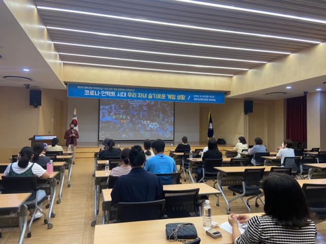 ¡®Äڷγª¡¤¾ðÅÃÆ® ½Ã´ë ¿ì¸® ÀÚ³à ½½±â·Î¿î °ÔÀÓ »ýȰ¡¯À» ÁÖÁ¦·Î [Çѱ¹ITÁ÷¾÷Àü¹®Çб³ °ÔÀÓ½ºÄð]ÀÇ È«¼º°ü ±³¼ö°¡ °»ç¸¦ ¸Ã¾ÒÀ¸¸ç, °úÀÇÁ¸Àû »ç¿ëÀ» ¼±Á¦ ¿¹¹æÇϱâ À§ÇÑ °ÔÀÓ ¸®ÅÍ·¯½Ã¿¡ ´ëÇÏ¿© ¾È³»Çß´Ù. º» °¿¬¿¡´Â 30¿©¸íÀÇ ÇкθðµéÀÌ Âü¿©ÇÏ¿´°í,¡°ÀÚ³à °ÔÀÓ À̿빮ȿ¡ ´ëÇÑ ÀÌÇØ¿Í °ÔÀÓÀ» À§ÇÑ ¼ÒÅë¹æ¹ý, ¿Ã¹Ù¸¥ °ÔÀÓÁöµµ ¹æ¹ý µî¿¡ ´ëÇÏ¿© ½ÇÁúÀûÀÎ µµ¿òÀÌ µÇ´Â °¿¬À̾ú´Ù¡±¸ç ¼Ò°¨À» ¹àÈù ºÎ¸ðµµ ÀÖ¾ú´Ù.