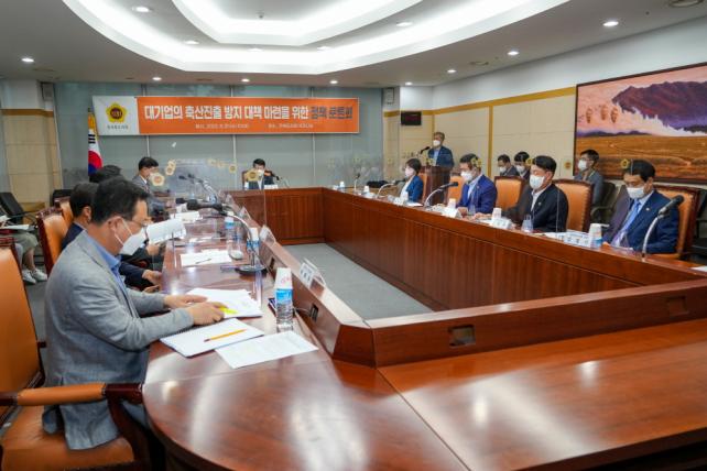 Åä·Ðȸ ÁøÇàÀ» ¸ÃÀº ±Ç¿ä¾È ÀÇ¿øÀº ¡°´ë±â¾÷ÀÇ °¡Ãà»çÀ°Àº Ãà»ê³ó°¡ÀÇ »ý°è¸¦ À§ÇùÇÏ´Â °ñ¸ñ»ó±Ç Ä§ÇØ·Î Ãà»ê³ó°¡ÀÇ °ñ¸ñ»ó±ÇÀ» Áö۱â À§ÇØ, Ãà»ê³ó°¡ »ýÁ¸±Ç º¸ÀåÀ» À§ÇØ ´ë±â¾÷ÀÇ °¡Ãà»çÀ°Àº ÁߴܵǾî¾ß ÇÑ´Ù¡±°í °Á¶Çϸç Åä·ÐÀ» ÁøÇàÇß´Ù.