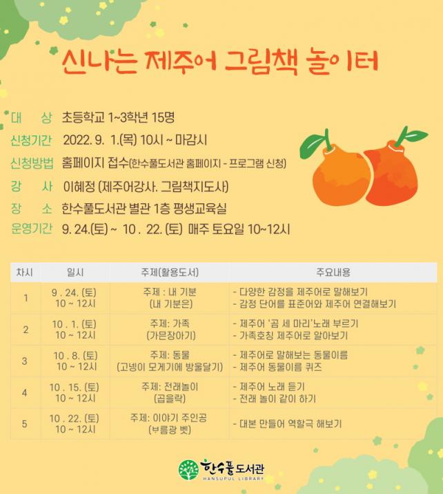 ÀÌ °Á¿¡¼´Â ÃʵîÇб³ 1~3Çгâ 15¸íÀ» ´ë»óÀ¸·Î ÀÌÇýÁ¤ ¼±»ý´ÔÀÇ Áöµµ·Î Á¦ÁÖ¾î ±×¸²Ã¥À» Ȱ¿ëÇÑ Á¦ÁÖ¾î Ç¥Çö ¹è¿ì±â, Á¦ÁÖ ÀüÅë ¹®È üÇè µî ´Ù¾çÇÑ µ¶ÈÄȰµ¿À» ÁøÇàÇÒ ¿¹Á¤ÀÌ´Ù.