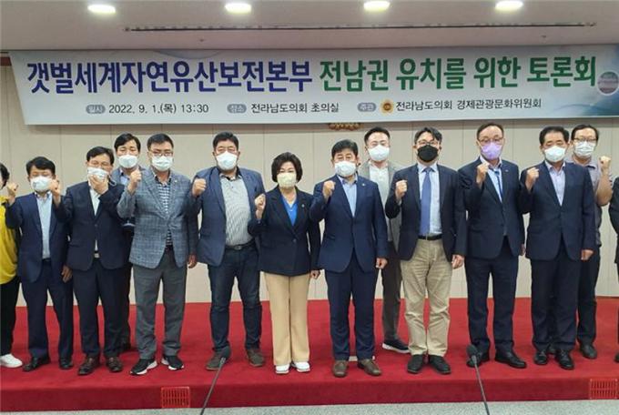 ÃÖÁ¤ÈÆ µµÀÇ¿øÀº ¡°¼¼°èÀÚ¿¬À¯»êÀ¸·Î ÁöÁ¤µÈ °¹¹ú 1284.11§´ Áß Àü³² ½Å¾È±ºÀÇ °¹¹ú¸¸ 85.7%ÀÎ 1100.86§´¸¦ Â÷ÁöÇØ ¿ì¸® Àü³²ÀÇ ½Å¾È, º¸¼º, ¼øÃµ °¹¹úÀÌ 90.4%ÀÇ ¾ÐµµÀûÀÎ ºñÁßÀ» Â÷ÁöÇϰí ÀÖÀ¸¹Ç·Î Àü³²ÀÇ °¹¹ú ¼¼°èÀÚ¿¬À¯»ê º»ºÎ À¯Ä¡°¡ ÀÚ¸íÇÑ »óȲÀÌ´Ù¡±°í °Á¶Çß´Ù. À̾î, ¡°´Ù¸¥ ÁöÀÚüµµ À¯Ä¡¿¡ Èû¾²°í Àֱ⿡ Àü³²ÀÇ À¯Ä¡¸¦ ´õ¿í È®°íÈ÷ ÇϰíÀÚ ÇÏ´Â ¹Ù¶÷À¸·Î Åä·Ðȸ¸¦ °³ÃÖÇÏ°Ô µÇ¾ú´Ù¡±°í ¹àÇû´Ù.