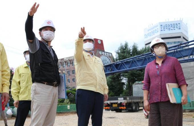 ÀÌ ±³À°°¨Àº À̳¯ ¿ÀÈÄ °´ç ¹× ±Þ½Ä¼Ò °³Ãà °ø»ç ÁßÀÎ µ¿±¸ °è¸²ÃʵîÇб³ °ø»ç ÇöÀåÀ» ¹æ¹®ÇØ ÅÂdz ´ëºñ »óȲÀ» Á÷Á¢ Á¡°ËÇß´Ù. ÀÌ ±³À°°¨Àº ¡°ÅÂdz Èù³²³ë´Â ¿ª´ë±ÞÀ¸·Î ¸¹Àº ºñ¿Í °Ç³À» µ¿¹ÝÇÒ °ÍÀ¸·Î ¿¹º¸µÅ ÇÇÇØ°¡ ¿ì·ÁµÈ´Ù¡±¸é¼ ¡°Æ¯È÷ Çб³ ½Ã¼³°ø»ç ÇöÀåÀº ÇлýµéÀÌ ¿À°¥ »Ó ¾Æ´Ï¶ó °Ç³À¸·Î °ø»çÀÚÀç°¡ ³¯¸± ¼ö ÀÖ¾î ¸¸¹ÝÀÇ ´ëºñ¸¦ ÇØ¾ß ÇÑ´Ù¡±°í °Á¶Çß´Ù.