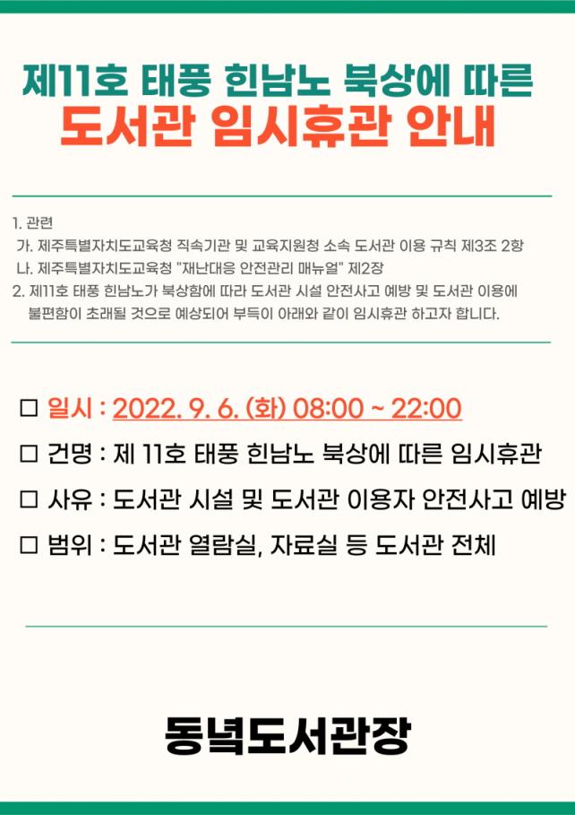 ÀÓ½ÃÈÞ°ü¿¡ µû¶ó µµ¼°ü ¿¶÷½Ç ¹× ÀÚ·á½Ç µî µµ¼°ü ½Ã¼³ Àüü ÀÌ¿ëÀÌ ºÒ°¡Çϸç 9¿ù 6ÀÏ(È)±îÁö ¹Ý³³¿¹Á¤ ÀÚ·á´Â 9¿ù 7ÀÏ(¼ö)±îÁö ¹Ý³³ÀÏÀÌ ¿¬ÀåµÈ´Ù.