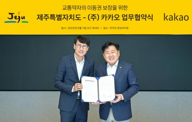 Á¦ÁÖµµ´Â 7ÀÏ ¿ÀÈÄ 4½Ã °æ±â ¼º³²½Ã īī¿À ÆÇ±³ »ç¿Á¿¡¼ īī¿À¿Í ±³Åë¾àÀÚÀÇ À̵¿±Ç º¸ÀåÀ» À§ÇÑ ¾÷¹«Çù¾àÀ» ü°áÇß´Ù. Çù¾àÀ» ÅëÇØ ¾ç ±â°üÀº ¡â±³Åë¾àÀÚÀÇ ¾ÈÀüÇÑ À̵¿À» À§ÇÑ °¡Ä¡ ÀÖ´Â µ¥ÀÌÅÍ Á¦°ø ¹× ¹ß±¼ ¡â°ø°øµ¥ÀÌÅ͸¦ Ȱ¿ëÇÑ À̵¿Áö¿ø ¼ºñ½º ¼±ÁøÈ ¹× È«º¸ Áö¿ø µî¿¡ ´ëÇØ Çù·ÂÇϱâ·Î Çß´Ù.