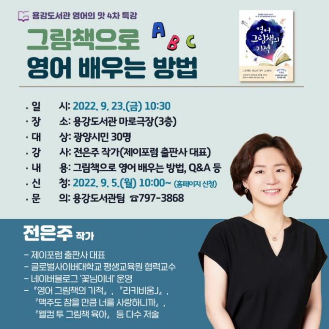 Ư°Àº ¿À´Â 23ÀÏ ¿ÀÀü 10½Ã 30ºÐ¿¡ Á¦ÀÌÆ÷·³ ÃâÆÇ»ç ´ëÇ¥ÀÌÀÚ ¡¸¿µ¾î ±×¸²Ã¥ÀÇ ±âÀû¡¹À» Àú¼úÇÑ ÀüÀºÁÖ ÀÛ°¡¸¦ ÃʺùÇØ ÁøÇàÇÒ ¿¹Á¤À̸ç, ±×¸²Ã¥À» ÅëÇØ ¿µ¾î¸¦ ¹è¿ì´Â ÀåÁ¡°ú ¿µ¹Ì±Ç ¹®ÈÀÇ ÀÌÇØ µî ¿µ¾î ±×¸²Ã¥ ÀбâÀÇ Á߿伺À» °Á¶Çϰí, ÁúÀÇÀÀ´äÀ» ÅëÇØ ¿µ¾î±³À°¹æ¹ý¿¡ ´ëÇÑ ±Ã±ÝÁõµµ ÇØ¼ÒÇÒ °èȹÀÌ´Ù.