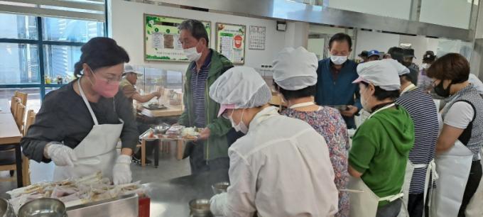 ¹è½Ä ºÀ»çȰµ¿¿¡ ¿©¼ºÀÚ¿øºÀ»ç±¤¾çÇùÀÇȸ¿ø 10¿© ¸íÀÌ °æ·Î½Ä´ç¿¡¼ ¹è½Ä, ½Ä±â ¼¼Ã´ µî ½Ä´ç ȯ°æ Á¤¸®¸¦ ÇÏ¸é¼ ÄèÀûÇÑ È¯°æ°ú ¹è½ÄÀ» À§ÇØ ±¸½½¶¡À» Èê·È´Ù. À½½ÄÀº °¥ºñÂò°ú ¼ÛÆí, ±âÁ¤¶± µî ¸íÀý Ư½ÄÀ¸·Î, Ãß¼® ¸íÀý Àü ¾î¸£½Åµé¿¡°Ô Á¦°øÇß´Ù.