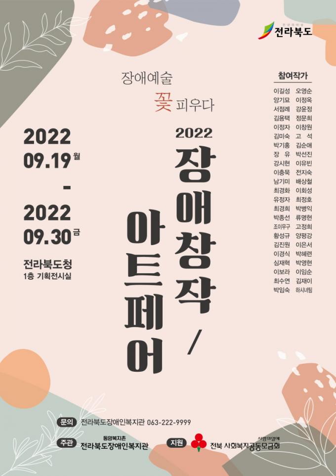 Àå¾ÖâÀÛ ¾ÆÆ®Æä¾î´Â ÀüºÏ»çȸº¹Áö°øµ¿¸ð±ÝȸÀÇ Áö¿øÀ¸·Î ÁøÇàµÇ°í ÀÖ´Â Àå¾Ö¿¹¼úâÀÛ°¡ ¾ÆÆ®Äݶóº¸Áö¿ø»ç¾÷ Áß Çϳª·Î °ø¸ð¸¦ ÅëÇØ ¼±Á¤µÈ µµ³» Àå¾Ö¿¹¼úâÀÛ°¡ 46¸íÀÌ Âü¿©ÇÒ ¿¹Á¤ÀÌ´Ù.