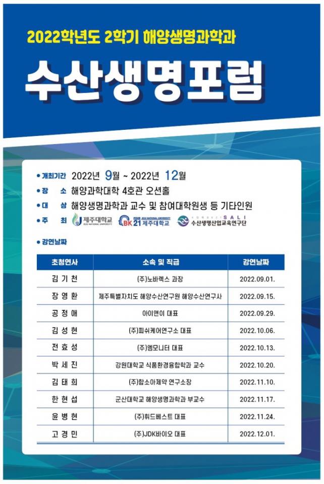 ù³¯ÀÎ Áö³ 1ÀÏ¿¡´Â (ÁÖ)³ë¹Ù·º½º »ý¸í°úÇבּ¸¼Ò ±è±âõ Ã¥ÀÓ¿¬±¸¿øÀÇ ¡®°Ç°±â´É½Äǰ°³¹ß(°Ç°±â´É½Äǰ ¿ùµå Ŭ·¡½º Èĺ¸ ±â¾÷ ³ë¹Ù·º½º)¡¯¸¦ ÁÖÁ¦·Î ¼ö»ê»ý¸íÆ÷·³ÀÌ ¼ºÈ²¸®¿¡ ÁøÇàµÆ´Ù. 15ÀÏ¿¡´Â Á¦ÁÖÆ¯º°ÀÚÄ¡µµ ÇØ¾ç¼ö»ê¿¬±¸¿ø À念ȯ ÇØ¾ç¼ö»ê¿¬±¸»çÀÇ ¡®Á¦ÁÖÁö¿ª ¾ç½Ä ¼ö»ê¹° °ü¸® ü°è ¹× À°»ó ¾ç½ÄÀå °ü¸® ÇöȲ¡¯, 29ÀÏ¿¡´Â ¾ÆÀ̾ØÀÌ °øÁ¤¾Ö ´ëÇ¥¸¦ ÃÊû, ¡®±Û·Î¹ú KºäƼÀÇ ¸¶·Â, ÇØ¾ç»ý¹°ÀÇ ¸Å·Â¡¯À» ÁÖÁ¦·Î Ư°ÀÌ ÁøÇàµÈ´Ù.
