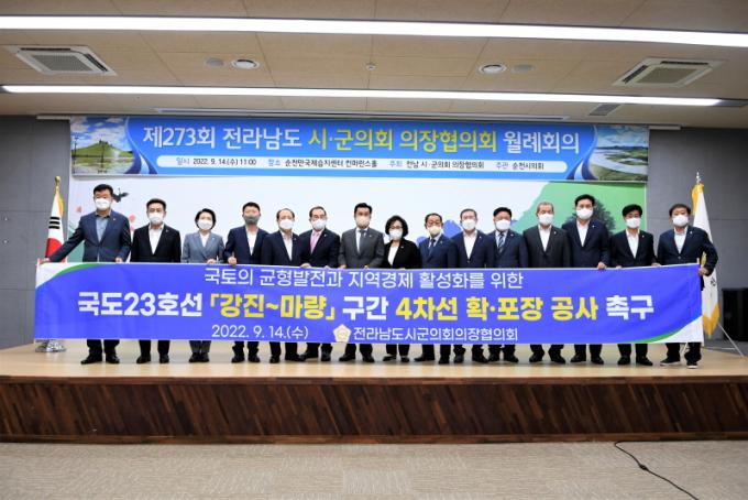 Áö³ 14ÀÏ ¼øÃµ¿¡¼ °³ÃÖµÈ Á¦273ȸ Àü³²½Ã±ºÀÇÀåÇùÀÇȸ¿¡¼ ±èº¸¹Ì ÀÇÀåÀÌ ´ëÇ¥ ¹ßÀÇÇÑ ¡®±¹µµ 23È£¼± °Áø~¸¶·®°£ 4Â÷¼± È®․Æ÷Àå Ã˱¸ °ÇÀǾȡ¯ÀÌ Àü¿ø ¸¸ÀåÀÏÄ¡·Î Åë°úÇϸç, ÇùÀÇȸ ¾È°ÇÀ¸·Î äÅõƴÙ.