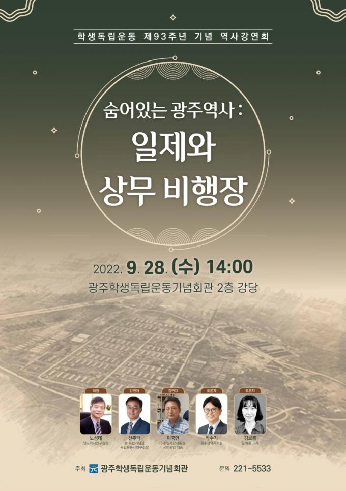 18ÀÏ Çлýµ¶¸³¿îµ¿±â³äȸ°ü¿¡ µû¸£¸é À̹ø °¿¬È¸´Â ¡ã±¤ÁÖÁö¿ª 1940³â´ë º´Âü±âÁöÈÀÇ ¿ª»ç ¡ã ±¤ÁÖ¿¡ ³²¾Æ ÀÖ´Â Àü½Ãµ¿¿øÃ¼Á¦ À¯Àû Ȱ¿ë¹æ¾ÈÀ» ÁÖÁ¦·Î ¿¸°´Ù. ƯÈ÷ ±×µ¿¾È Àß ¾Ë·ÁÁöÁö ¾Ê¾Ò´ø ±¤ÁÖÀÇ ¿ª»çÀû Àå¼Ò(Ä¡Æòµ¿ ºñÇàÀå)¿¡ ´ëÇÑ »ç°Ç¡¤»ç·á ÇØ¼³°ú ¼û¾î ÀÖ´Â À̾߱âµéÀ» µéÀ» ¼ö ÀÖ´Â ´ëÈÇü °¿¬À¸·Î ÁøÇàµÈ´Ù.