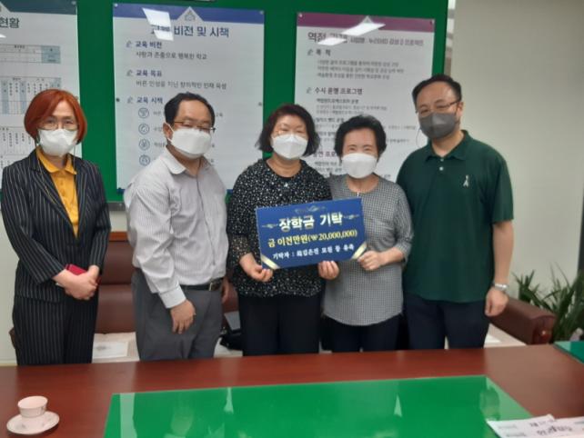 Àü´öÀÚ ¿©»çÀÇ µþ(ͺ±èÀºÁø)Àº 1980. 12. 18. °íÀÔ ¿¬ÇÕ°í»ç¸¦ ¸¶Ä¡°í ±Í°¡ µµÁß ºÒÀÇÀÇ ±³Åë»ç°í·Î »ç¸ÁÇÏ¿© ¾ÈŸ±õ°Ôµµ ´Ù´Ï´ø ÁßÇб³¸¦ Á¹¾÷ÇÏÁö ¸øÇÏ¿´´Ù. Àü´öÀÚ ¿©»ç´Â Àڱ⠵þÀº ºÒÀÇÀÇ ±³Åë»ç°í·Î Çо÷À» ¸¶Ä¡Áö ¸øÇßÁö¸¸ µþÀÌ °è¼ÓÇÏÁö ¸øÇÏ¿´´ø °øºÎ¸¦ Á¦ÁÖÁß¾Ó¿©ÀÚÁßÇб³ ÈĹèµéÀÌ °æÁ¦Àû ¾î·Á¿ò ¾øÀÌ Áö¼ÓÇÒ ¼ö ÀÖµµ·Ï µµ¿ÍÁÖ±â À§Çؼ ÀåÇбÝÀ» ÄèôÇÏ°Ô µÇ¾ú´Ù°í ÀåÇÐ±Ý ±âŹ ¹è°æÀ» ¼³¸íÇß´Ù.